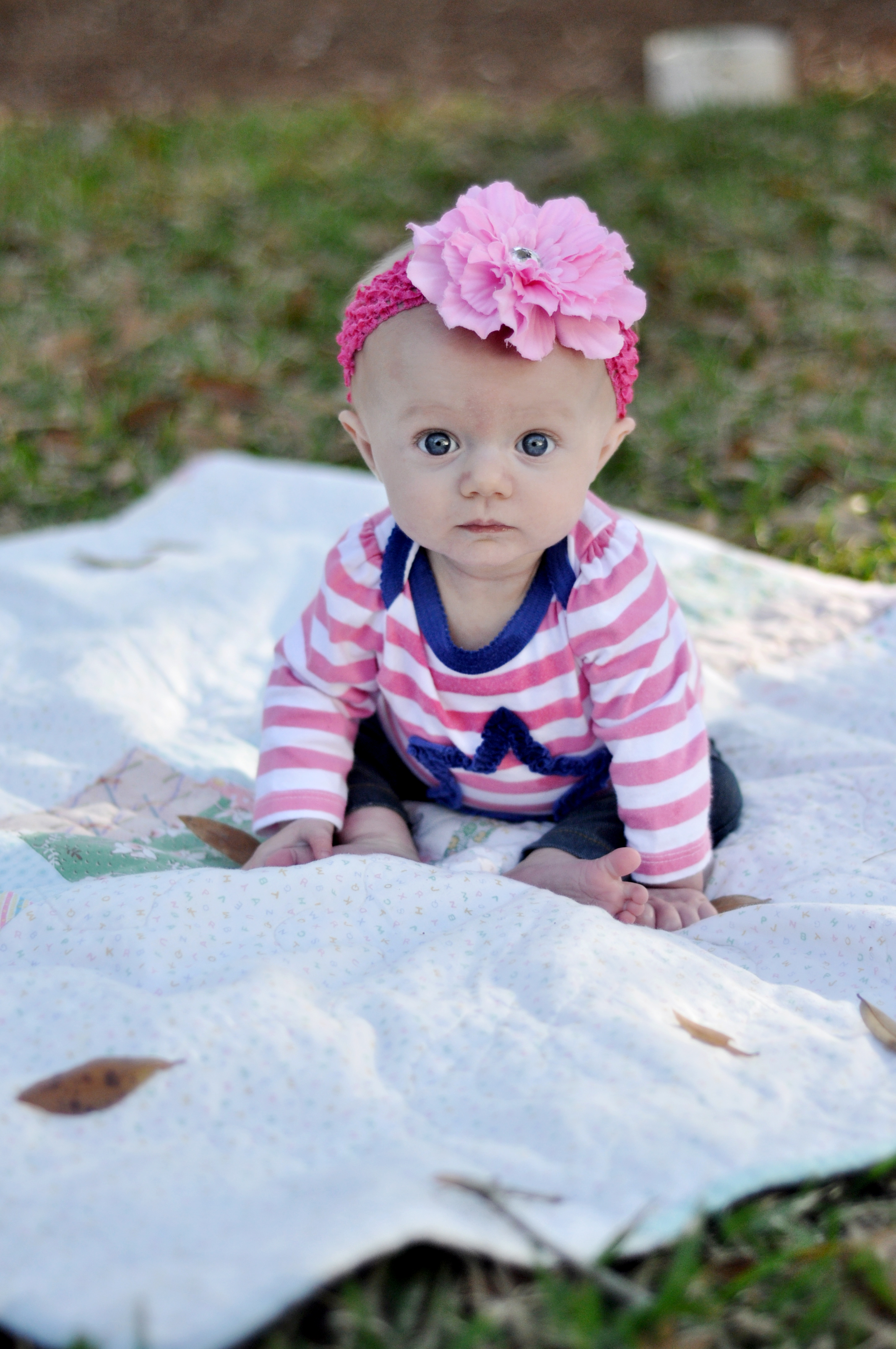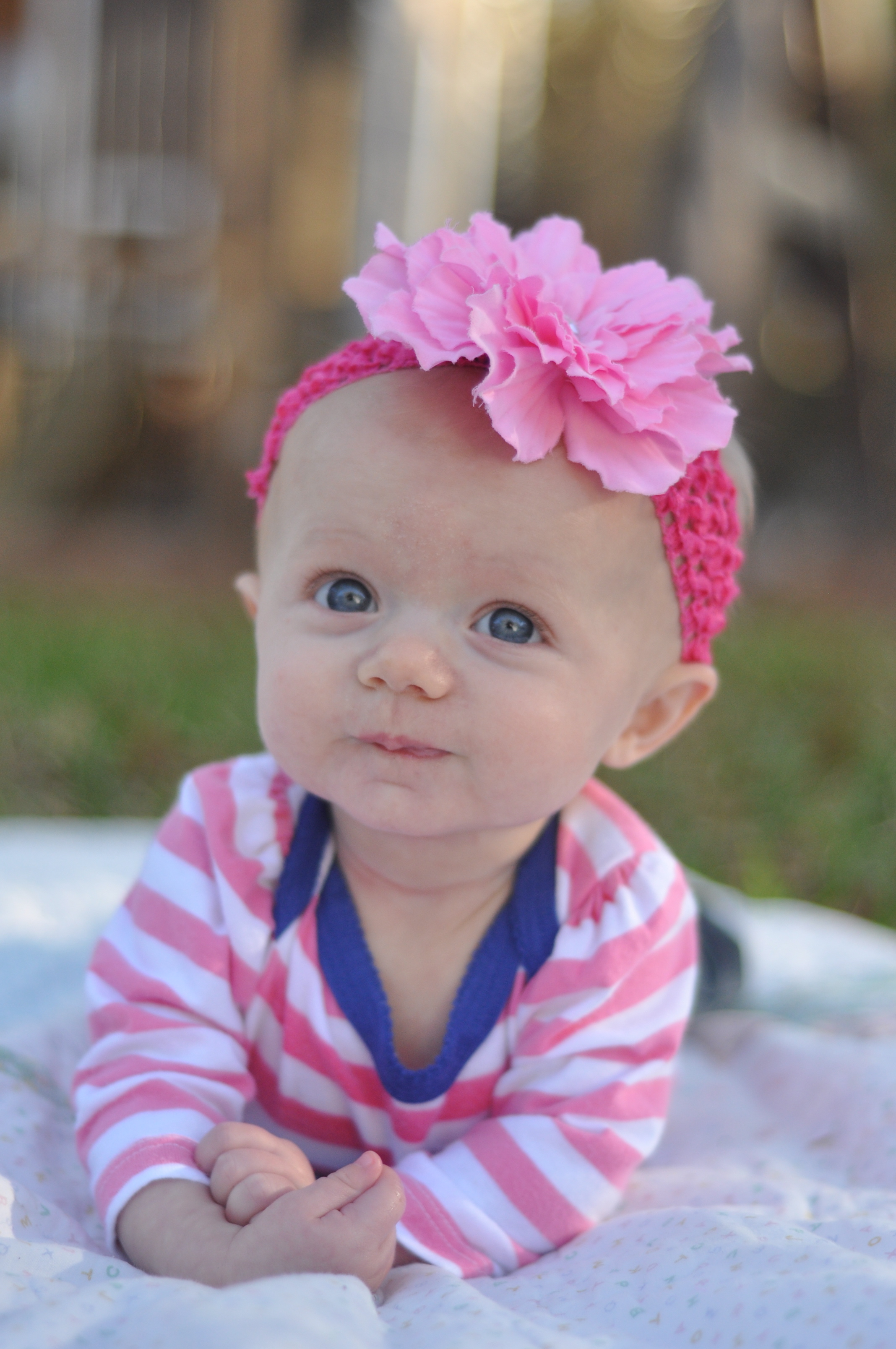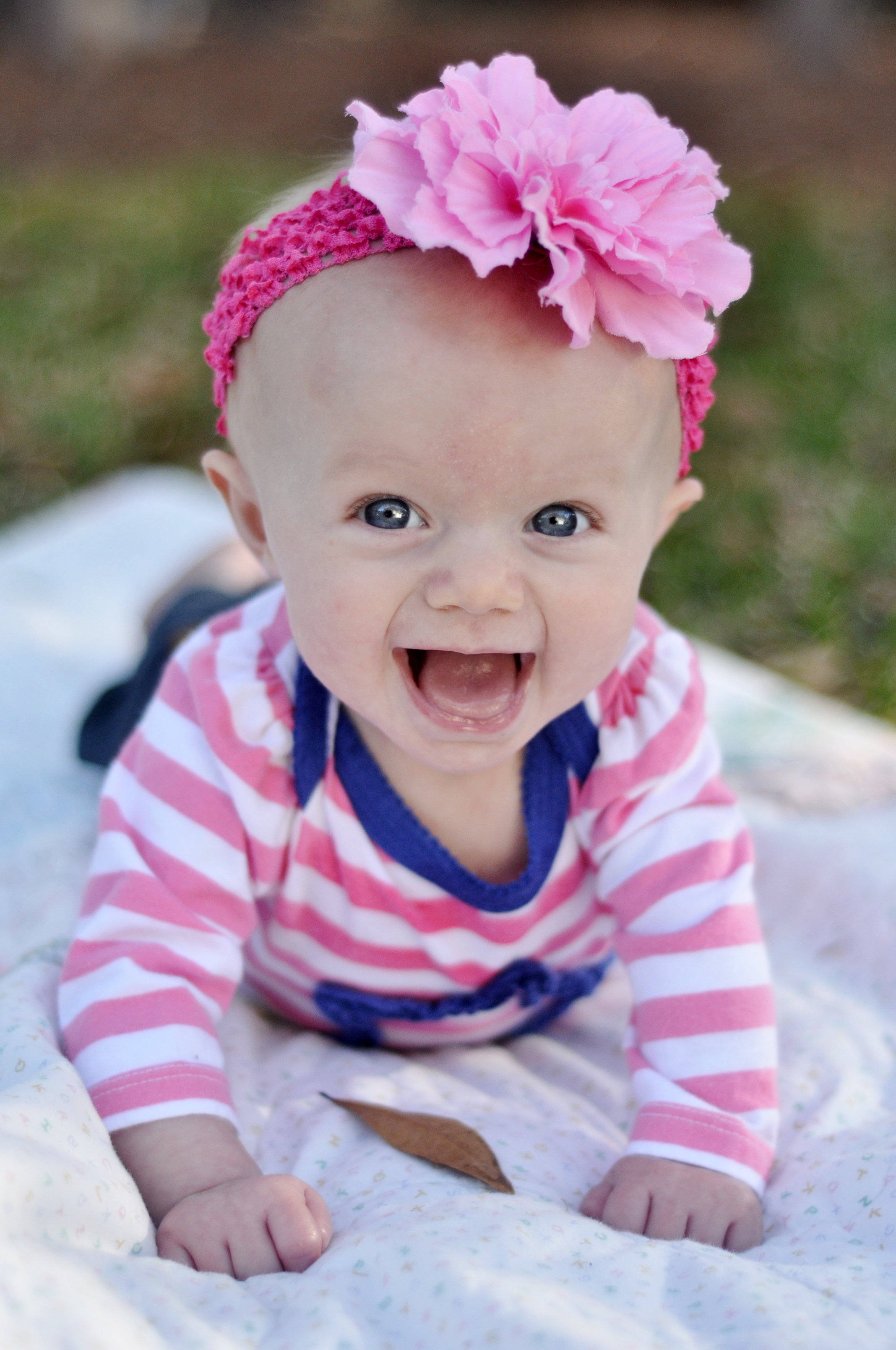 MJ is such a joy to be around. She does have a fiery little temper but 99% of the time she is pleasant with lots of smiles. She started eating foods; I was hoping to get a little meat on her bones. She is now 12.4 pounds and she loves food. I grind fresh oats and mix that with banana or pear sauce. She also likes avocado or sweet potato mixed with breast milk. Here are her 5 month photos!