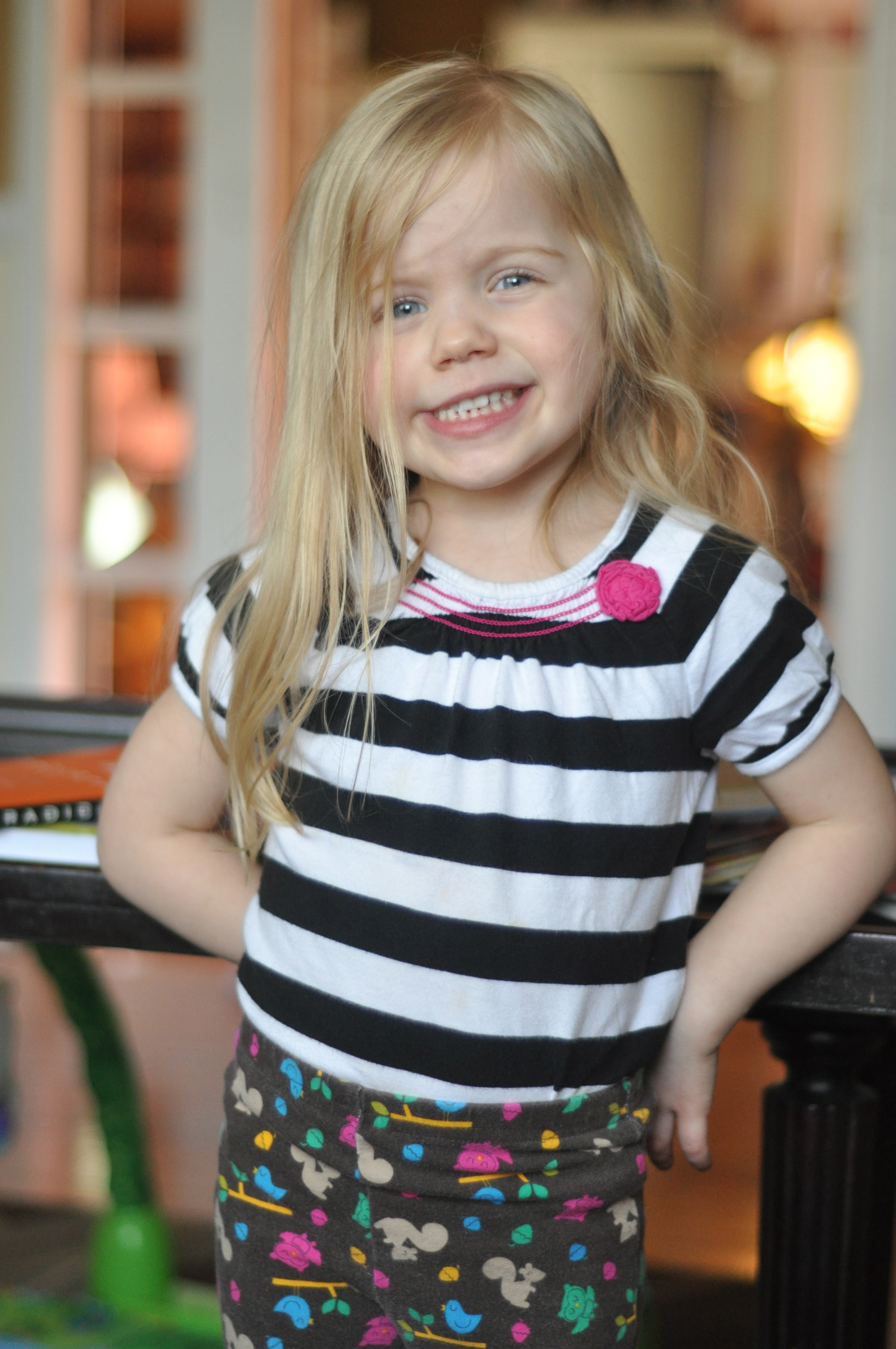 G is a bundle of energy right now and he talks ALL of the time. His favorite thing is to tell me is “Go, go” when I am sitting at a red light. It has worked out because I have used time in the car to teach him his colors. He now knows to only tell me “go,go” when the light turns green. He LOVES trucks; any kind, any size and he loves to read. We are teaching him how to sit still during K’s school time, which has been a challenge but he is learning!