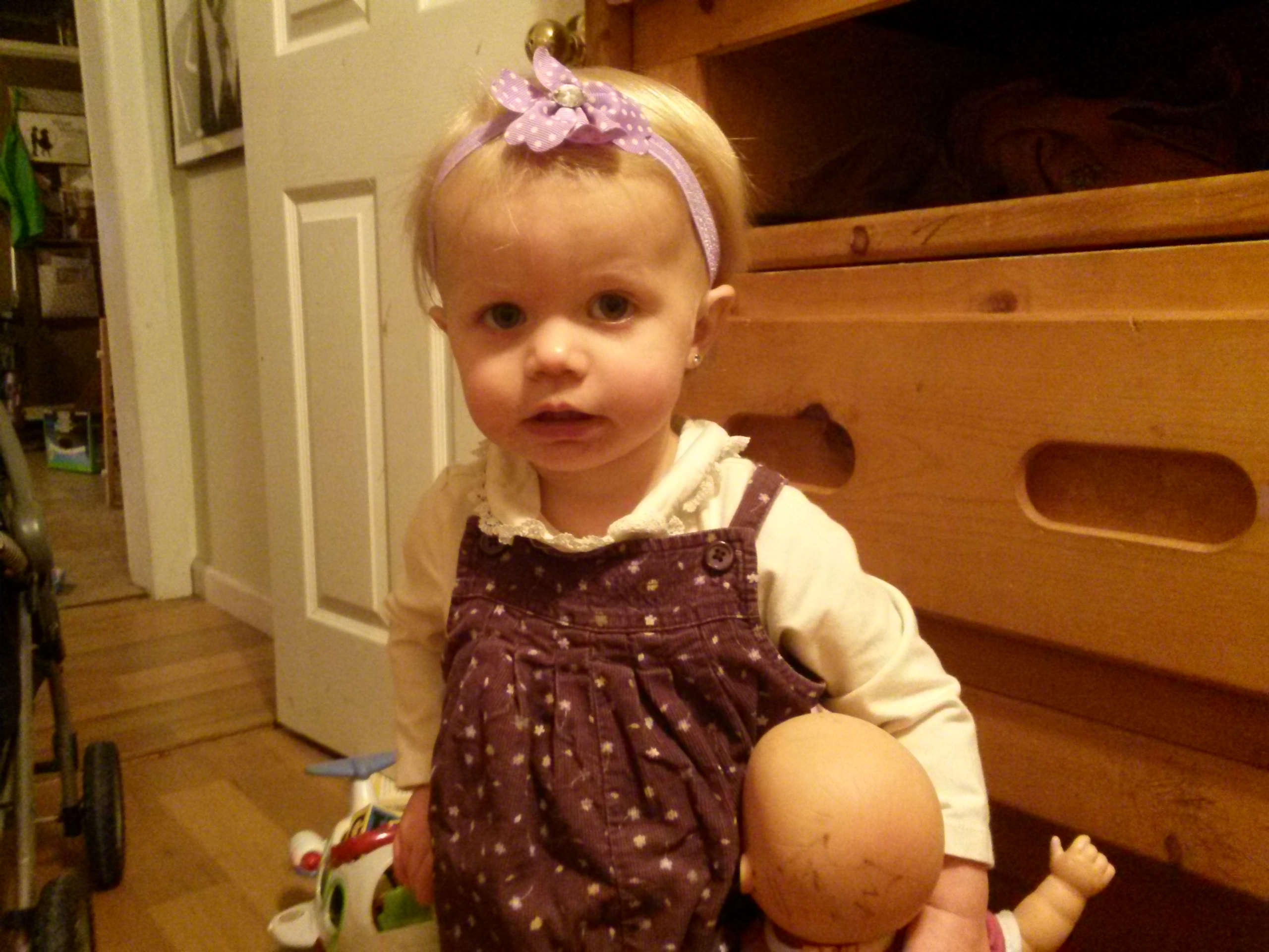 MJ is tiny little ball of energy. She is so petite but she has quite a personality. She is a child that knows what she wants and she will let you know! She talks a lot too, just like her big brother and sister, but most of it I have no idea what she is saying. She is very petite and very fast. In the last week she has become attached to one of K’s baby dolls and during that time she weaned herself. It has been a difficult transition for me but she is happy and growing up.