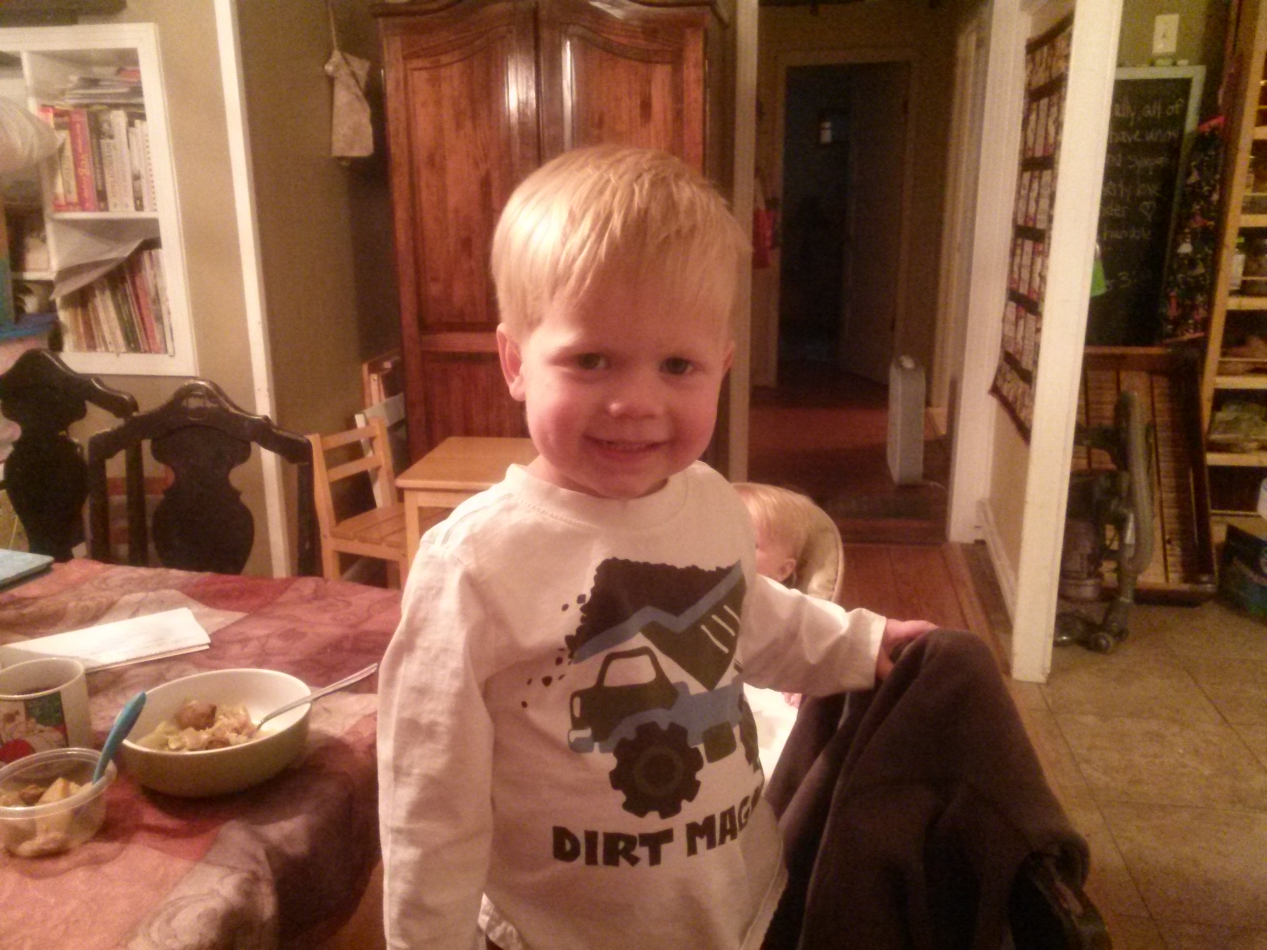 He thought it was the coolest thing! I have always cut the kids’ hair and Adam’s hair as well. He came home and told he got his hair cut at “the barbeque shop.” Man, I love that kid! He looks so handsome. He loves the shirt he is wearing in the 3rd picture. He says to me, “Mama, do you know what my shirt says? It says DIRT MAGNET!”