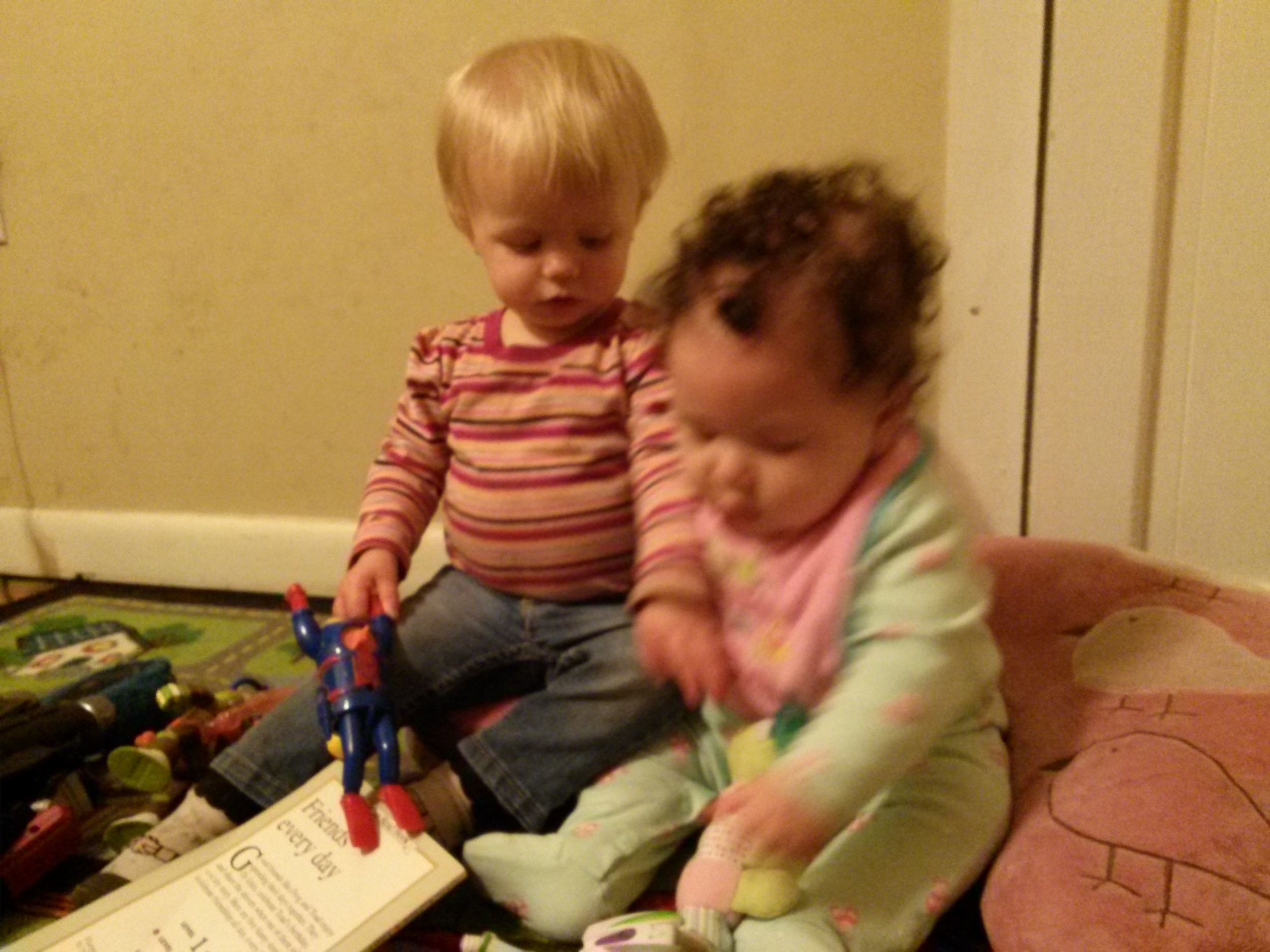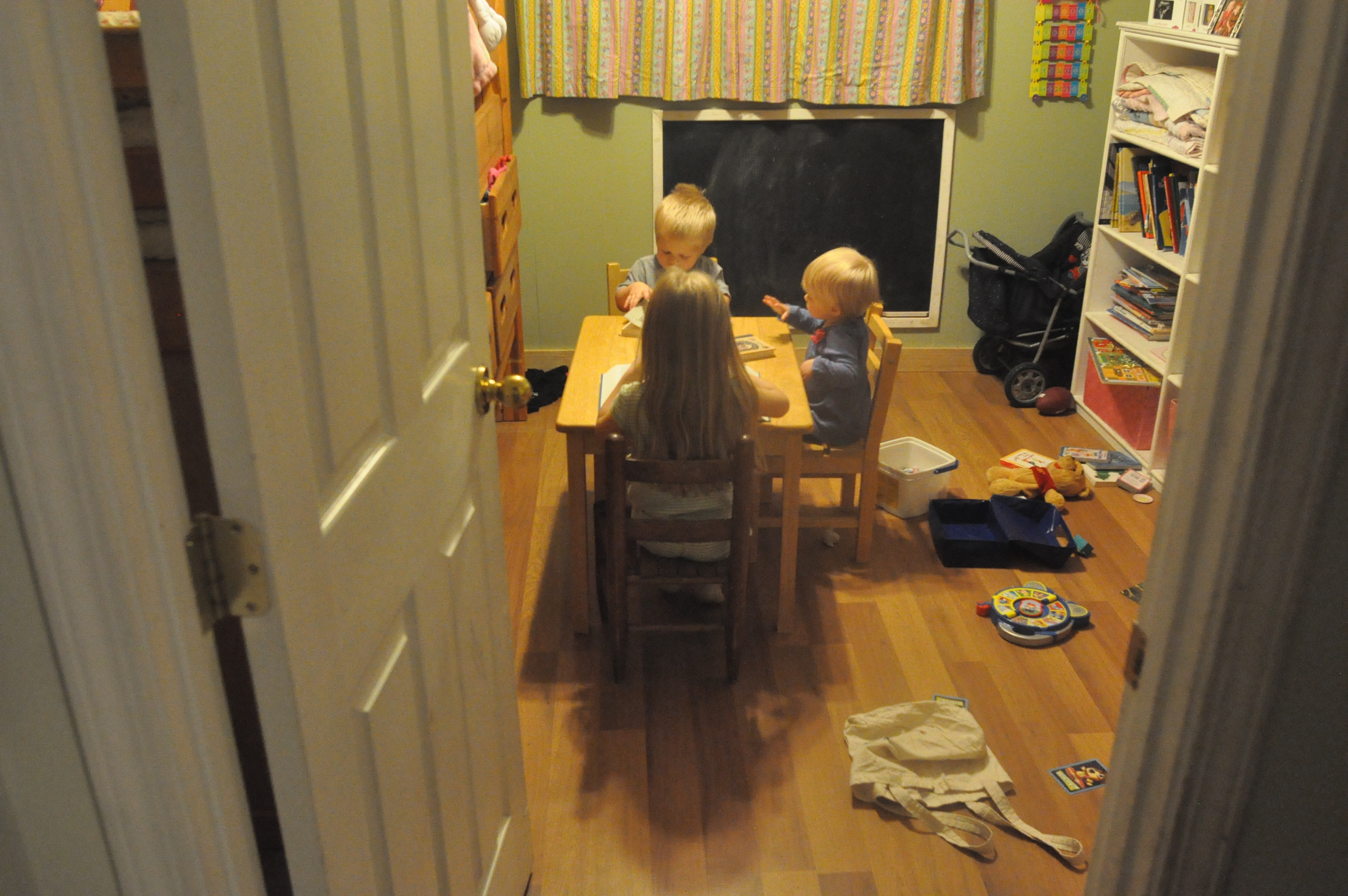 K was reading the Bible to them; it was very sweet to watch and listen.