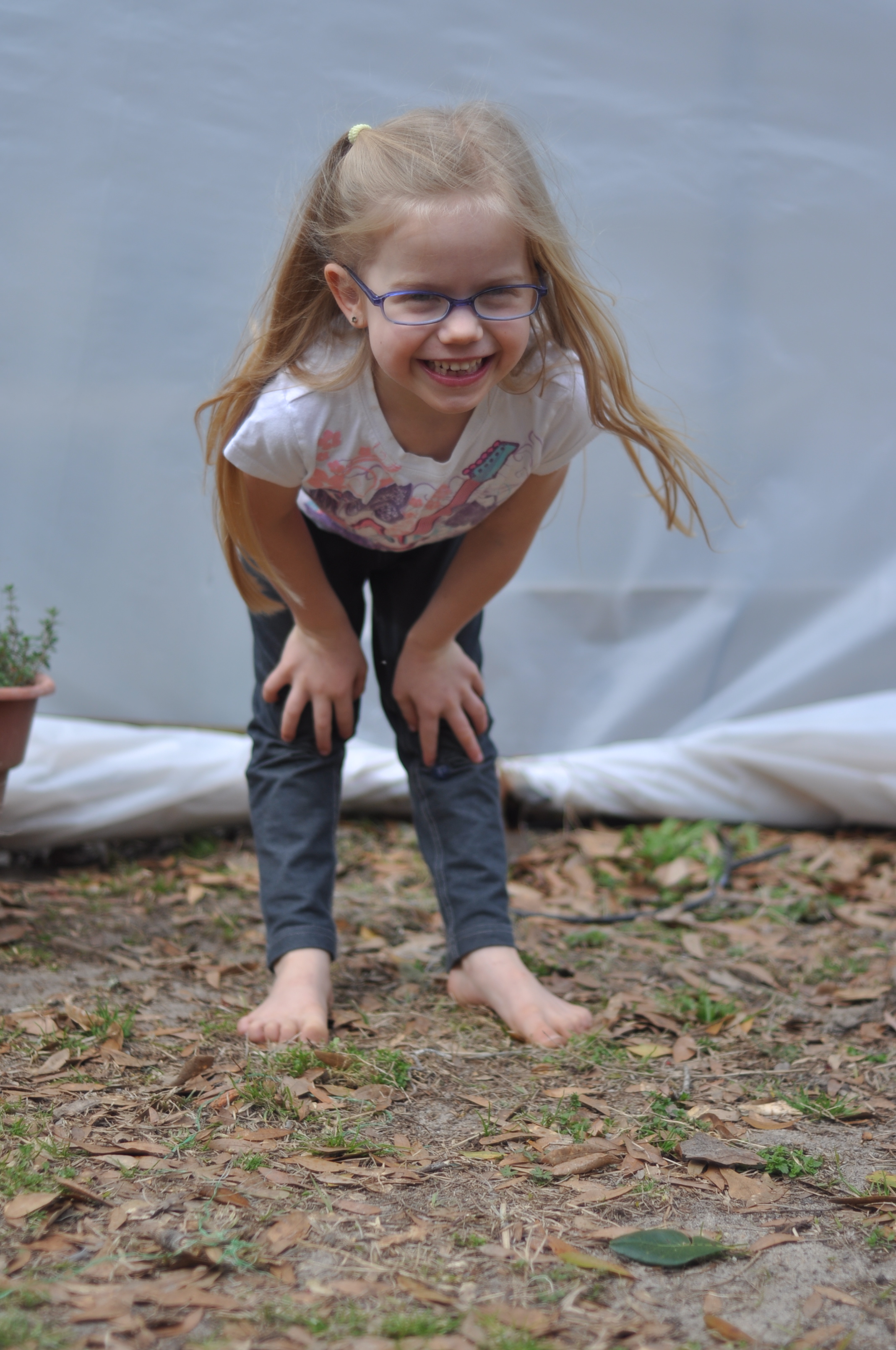 She is a ball of energy and even when she is sitting (not often), at least one part of her body is moving. She loves to climb trees, play in the dirt, cook and help Adam on the farm.