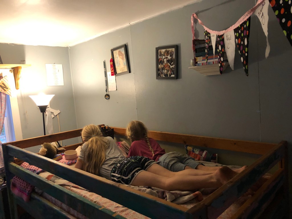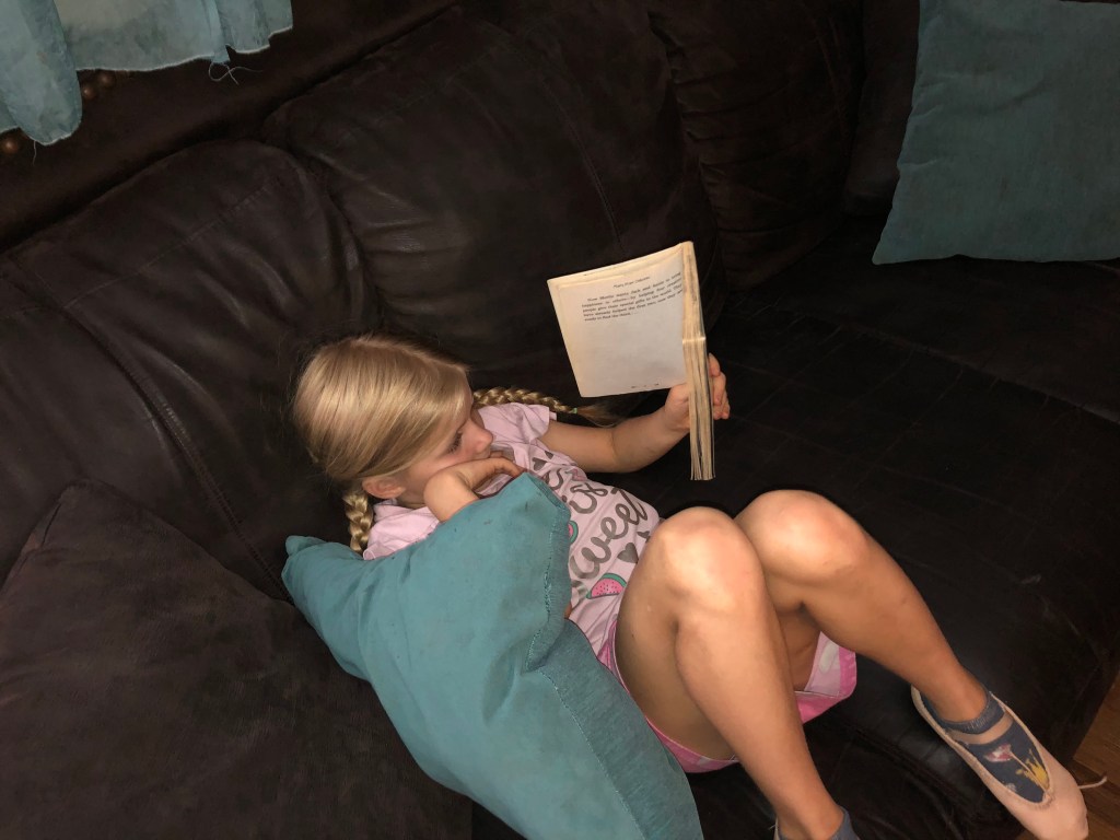I didn’t sleep well last night and I was awake by 4:20 this morning. This might sound odd, but I was excited about having an extra hour to myself. I was able to read and study my Bible, milk Reba, read a chapter in a book, go for a walk and start a load of laundry. The kids’ alarms went off at 6:30 and they were diligently out feeding/watering animals as I was wrapping up my morning duties outside. I was thinking, “Yeah! We are going to rock this school day!” We had plans to go to the library and swim with friends after lunch so I was excited about finishing our chores and school before heading to town.