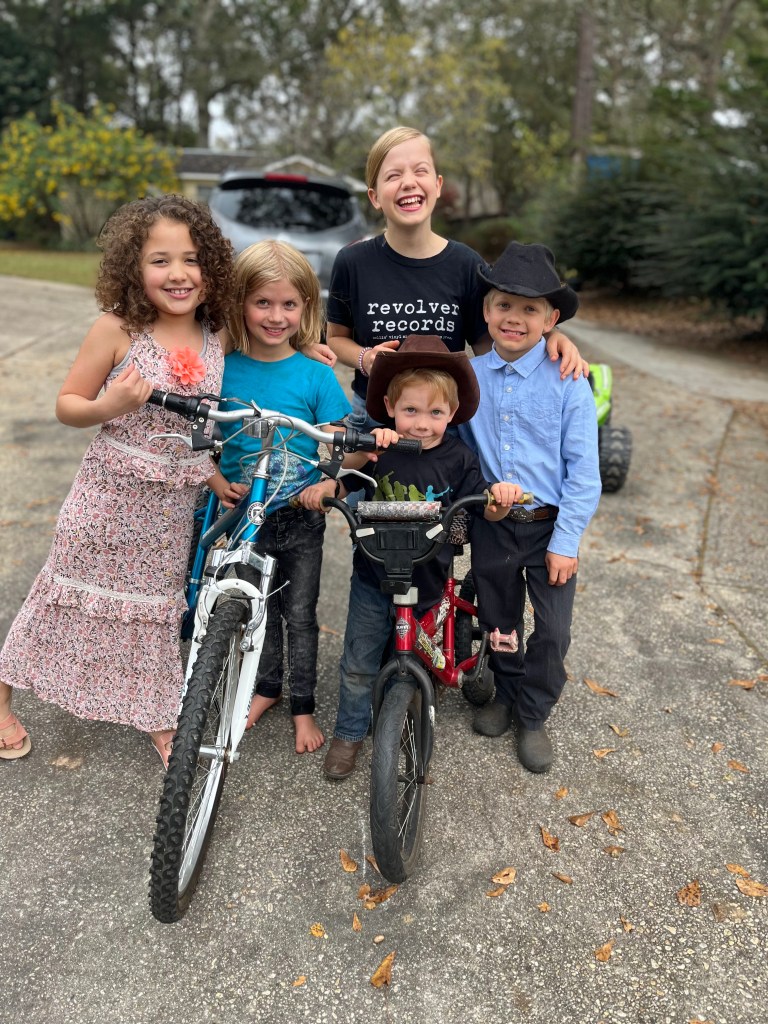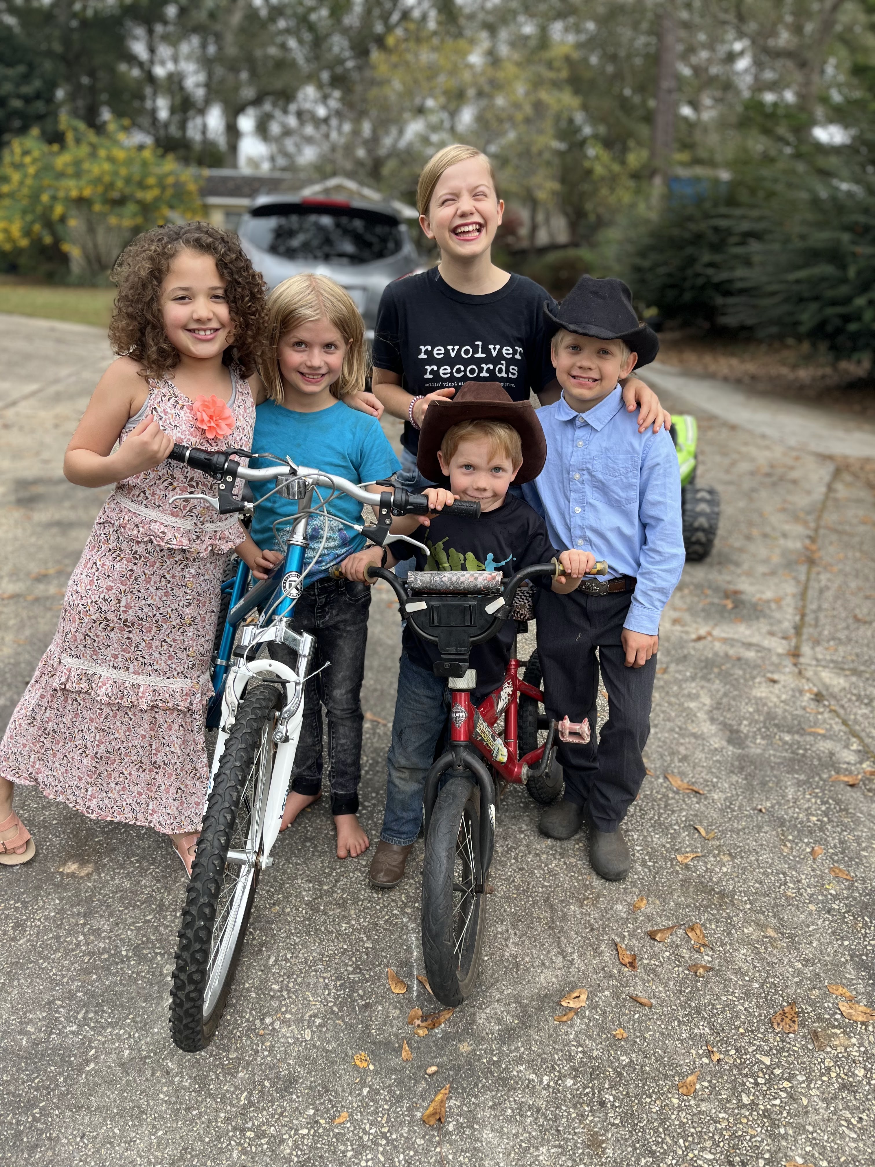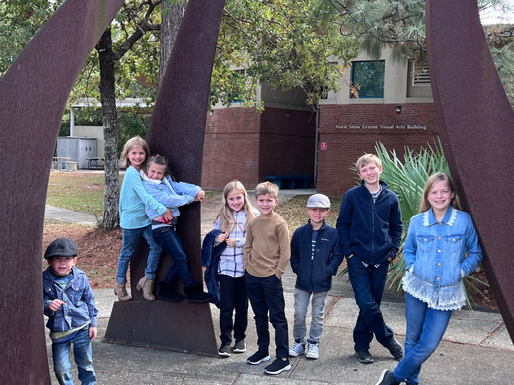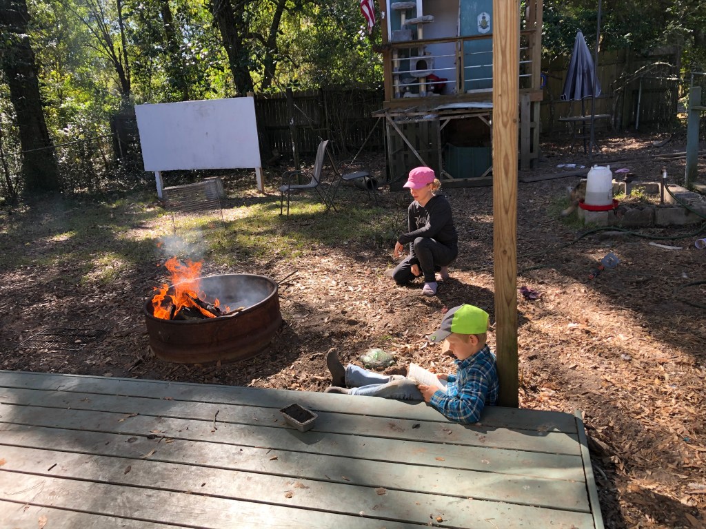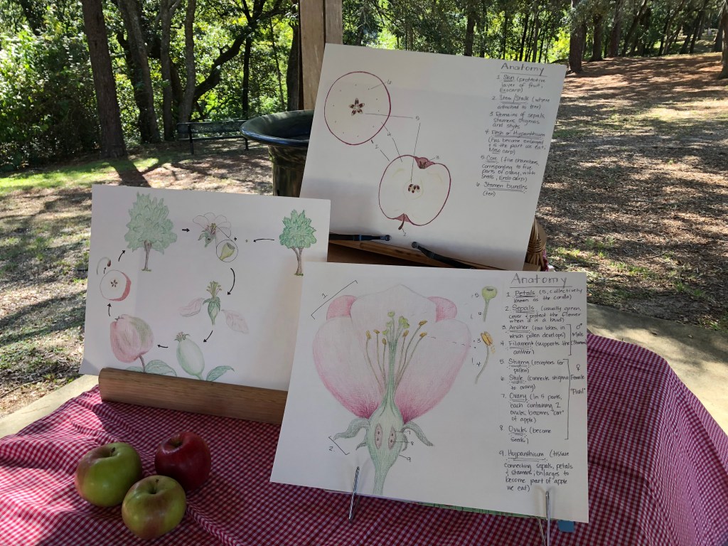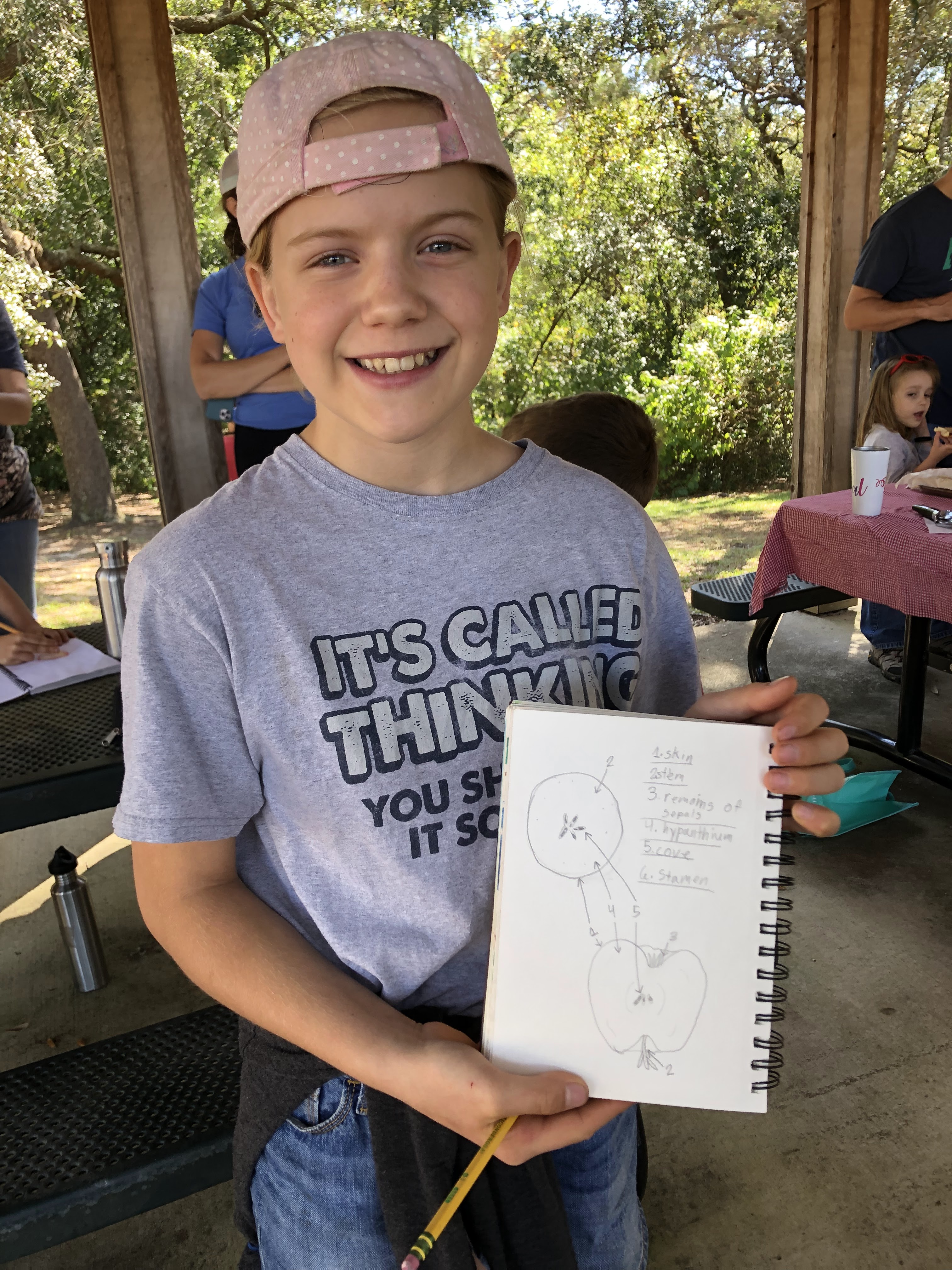 We are learning about apples this monthMadelynn is donating her hairSchool at Grandma and Grandpa’sLatin homeworkEmbroidery at nature studyA beautiful broad winged hawkMadelynn enjoyed riding a horseWe were able to watch a rat snake eating a squirrelExploring Navarre ParkSquirrel hunting is their favorite past-timeCooking their squirrel over the fireApple month!!!Graham wood burned our new garden gates