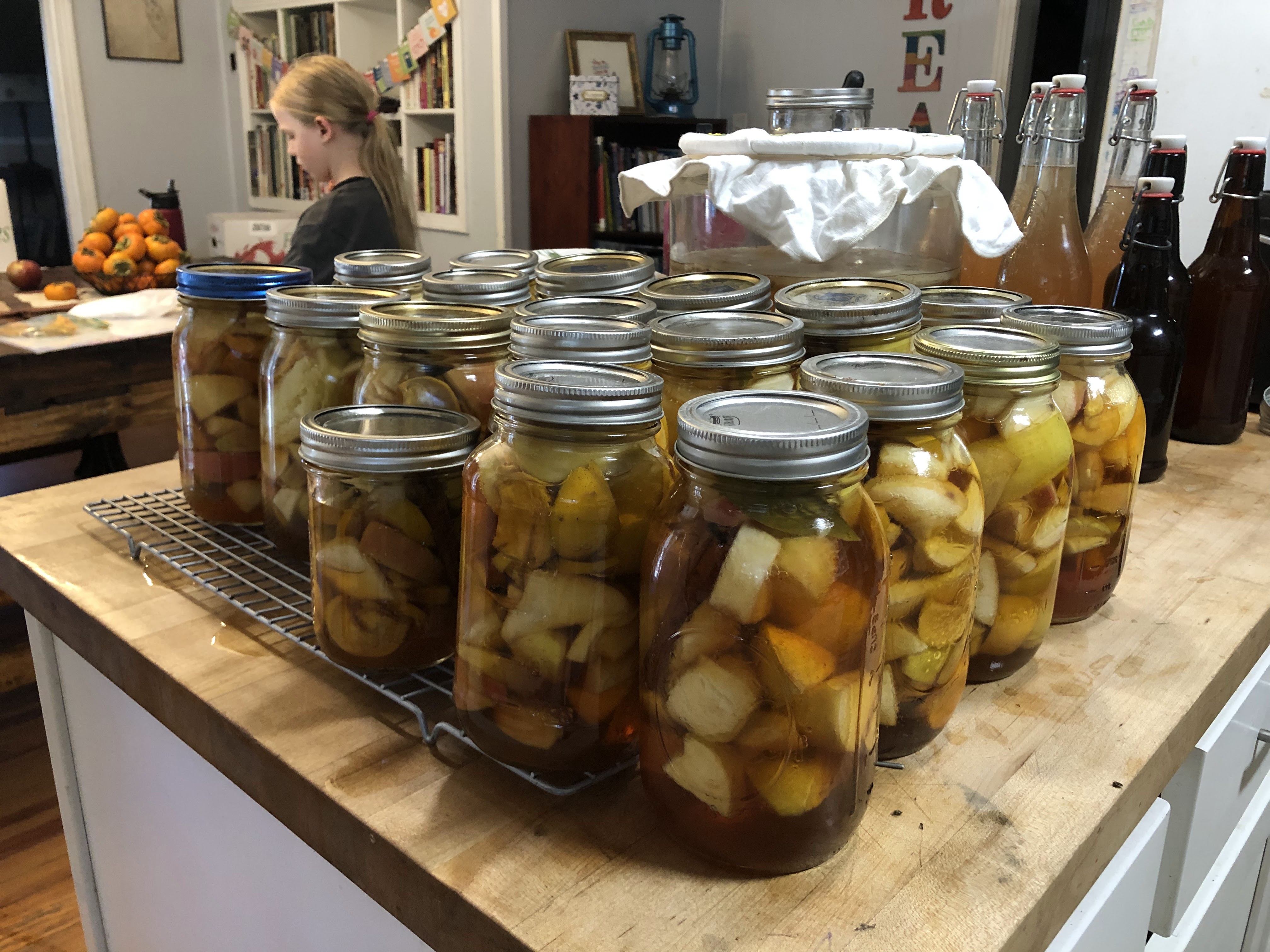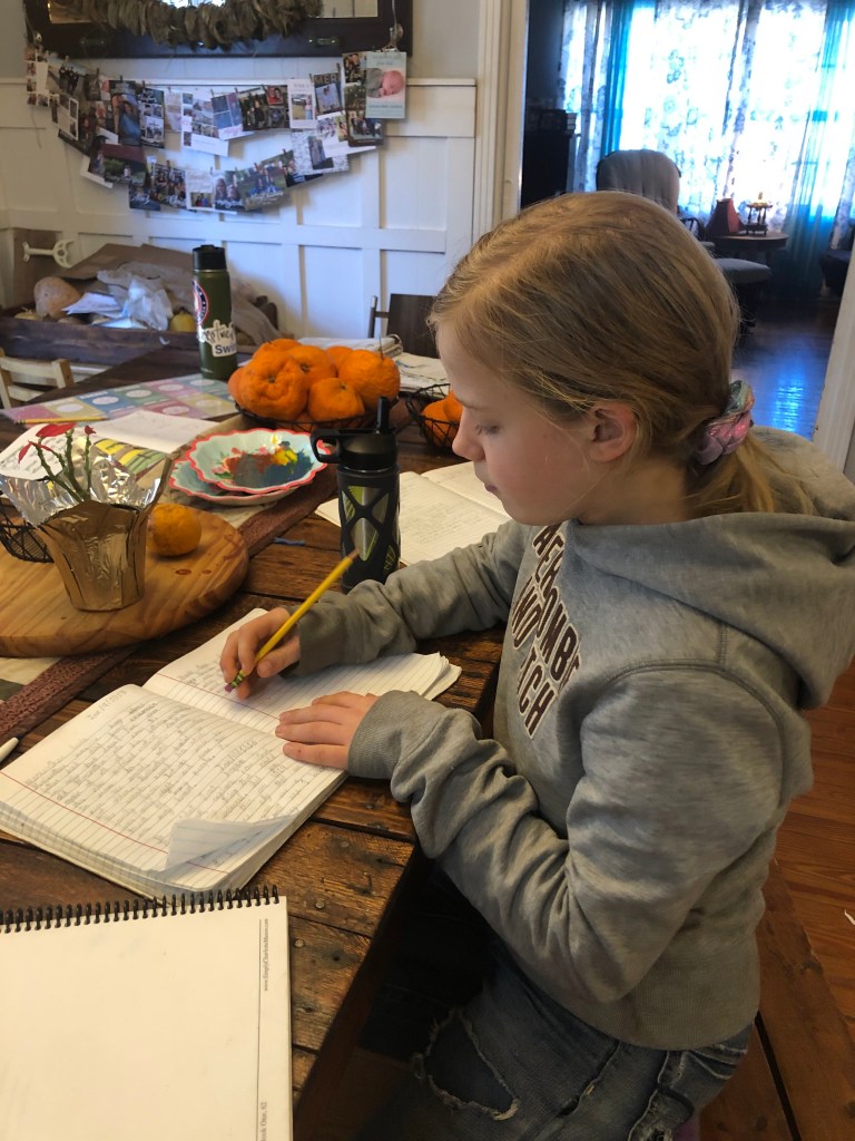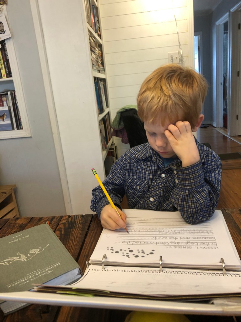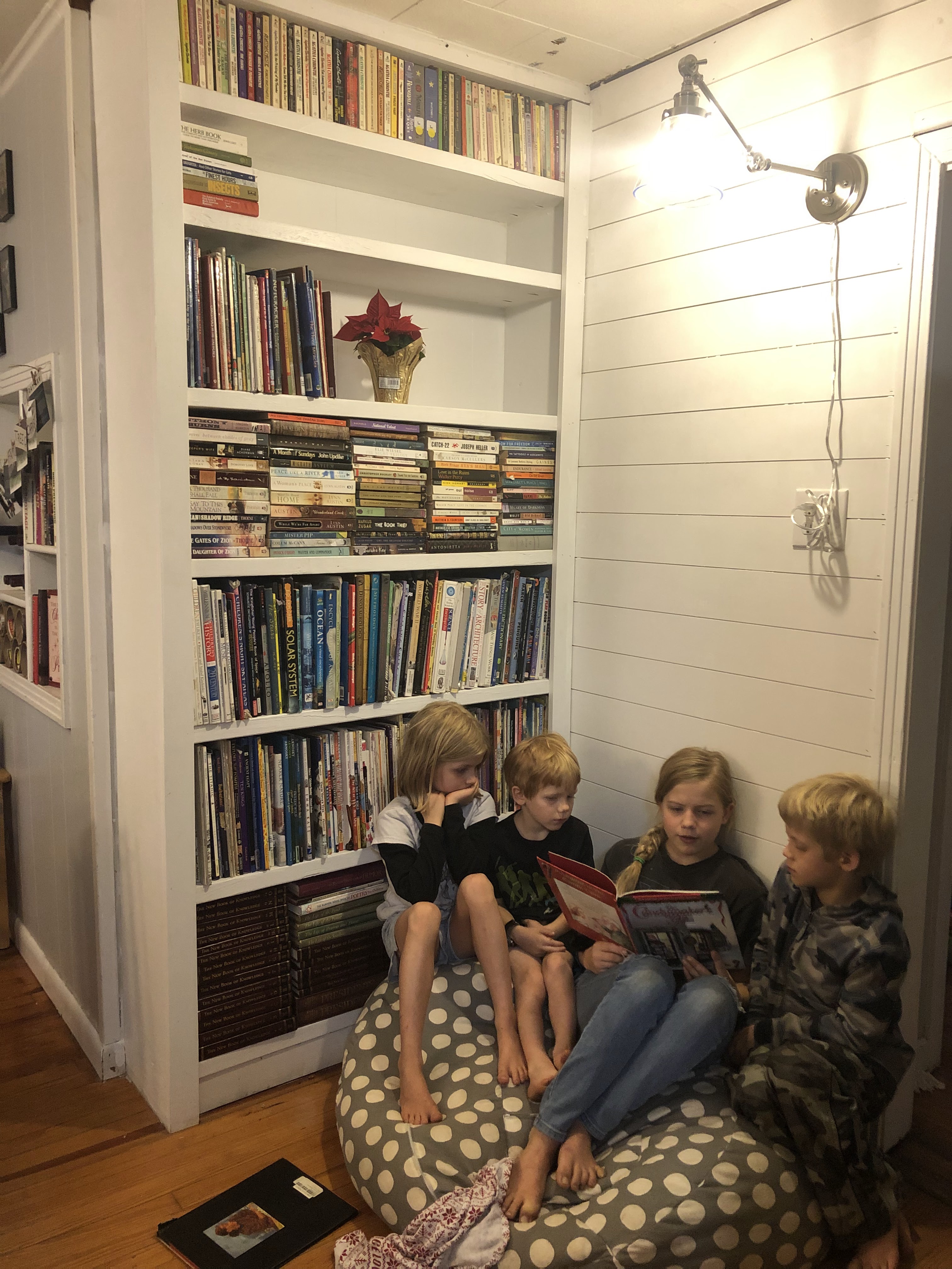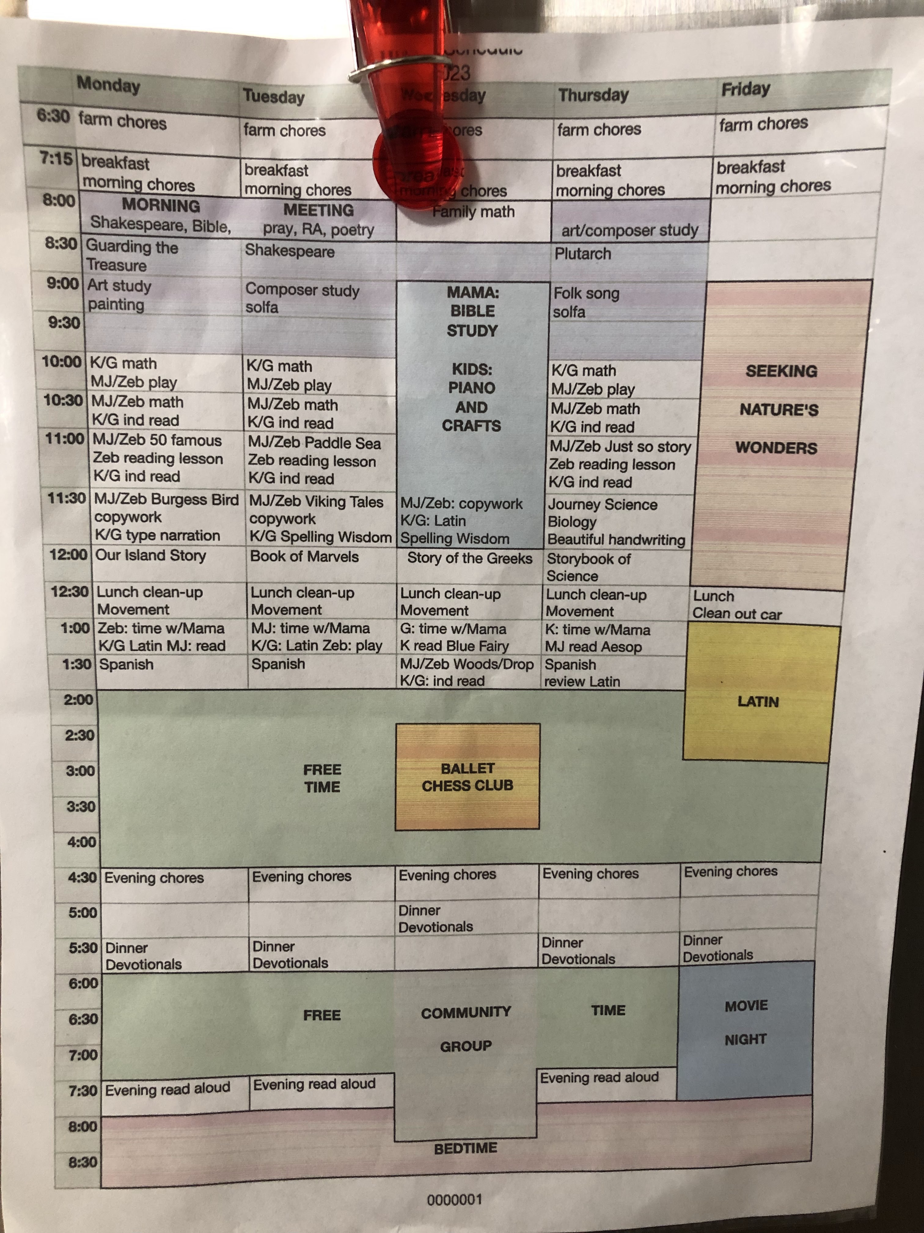 We started school back this week and many changes have been made. Zeb is now 6 so while he sat in our school days in the past, he is now an active participant. I realized that the last few years our school days have been tailored to Kathryn and Graham and Madelynn was just along for the ride. I want she and Zeb to get my time and the beautiful stories that Kathryn and Graham had when they were younger. We still have our “morning time” all together which encompasses: Bible, prayer, scripture recitation, a read aloud, poetry, hymn singing (all these happen daily) and then a rotation of Shakespeare, artist study, composer study, folk song, and Solfa. It’s our favorite time of the day where many beautiful conversations happen and with Zeb, lots of laughter. After this time, Zeb and Madelynn have some time to play while I work on math with Kathryn and Graham. Then Kathryn and Graham are sent off to read assigned books that they will narrate, either written or orally. During that time, I dive in with Madelynn and Zeb for math and read beautiful stories about history and nature and geography. It was so special having this time with them today. We meet back up for a walk before lunch and a reading all together during lunch. Each child has a day where they get time alone with me for 30 minutes after lunch, Monday through Thursday. We wrap up our day with a Spanish lesson and they get several hours of “free time” while I focus on dinner and my to-do list. I’m sure we will tweak the schedule as we go but we are all excited for this new routine. Today was full because laundry needed to be done and bread and yogurt needed to be made. I am hopeful that tomorrow will be less busy with those large tasks done for the week! I also refilled my homemade taco seasoning today (I love the art it makes in the process), I pickled carrots, cooked two rabbits, made a seminole pumpkin soup and finished yogurt. Some fun things that happened: About an hour into our school day, Zeb looked at me with weary eyes and said “When is my play time again?” Then I asked him to narrate what I read and he told me about the previous reading. He was so confident and it was quite funny! Madelynn acted out what I read in 50 famous stories for Adam when he got home and Graham told Adam all about the Science in It Couldn’t Just Happen. It was a successful first day back (it wasn’t perfect and there were frustrations along the way). I am looking forward to the conversations I will have with Kathryn and Graham about their independent readings and the time I get to spend with Madelynn and Zeb, curled up with beautiful stories that I love!