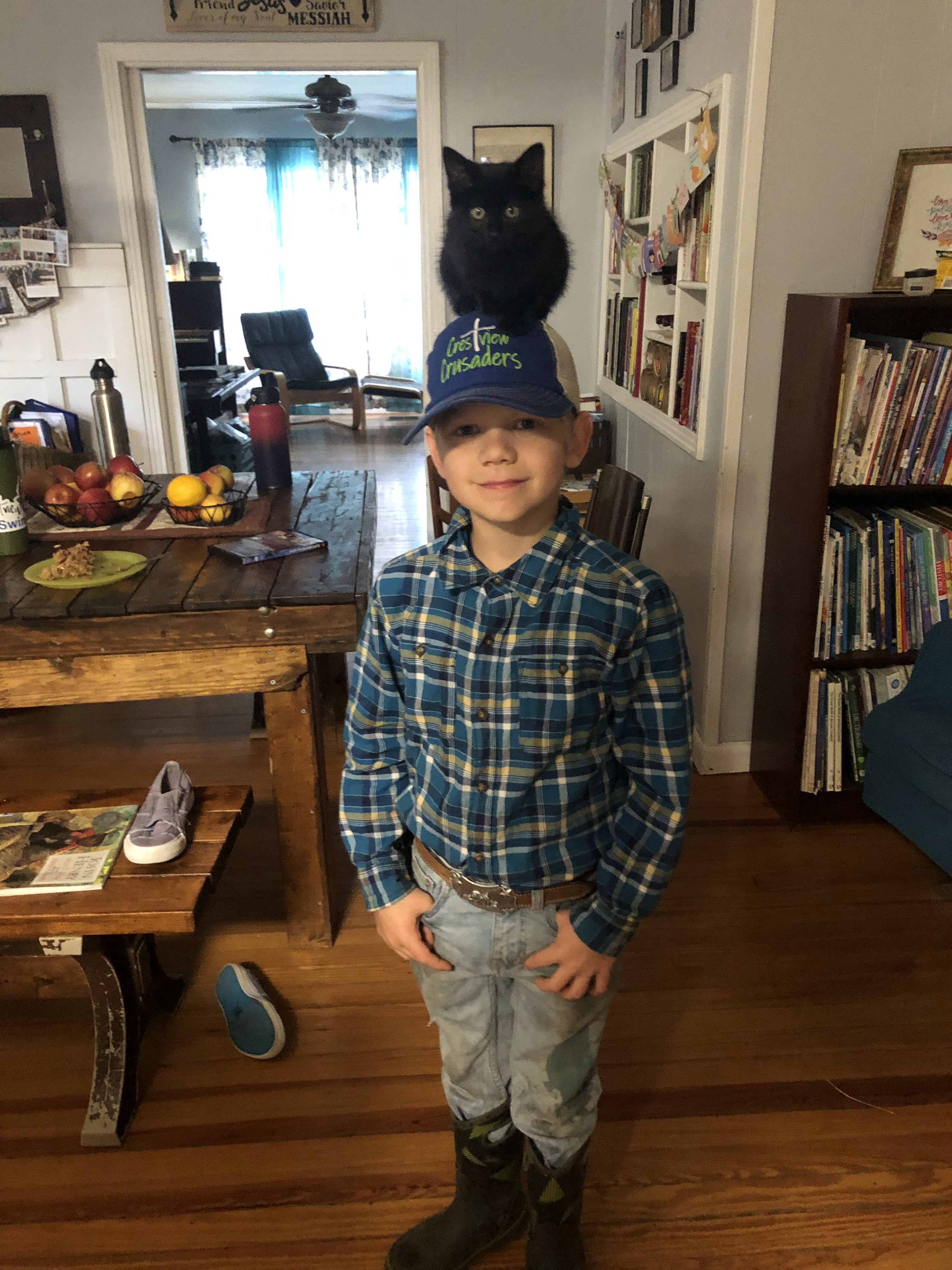 We start school tomorrow and we are all looking forward to getting back into a routine! Here are a few more pictures over the past few weeks and I’ll post soon pictures from the last three months. Kathryn is almost as tall as me and is quite the young lady. Zeb always has a cat with him. Grandma took them squirrel hunting and they were able to tour a replica of the Pinta.