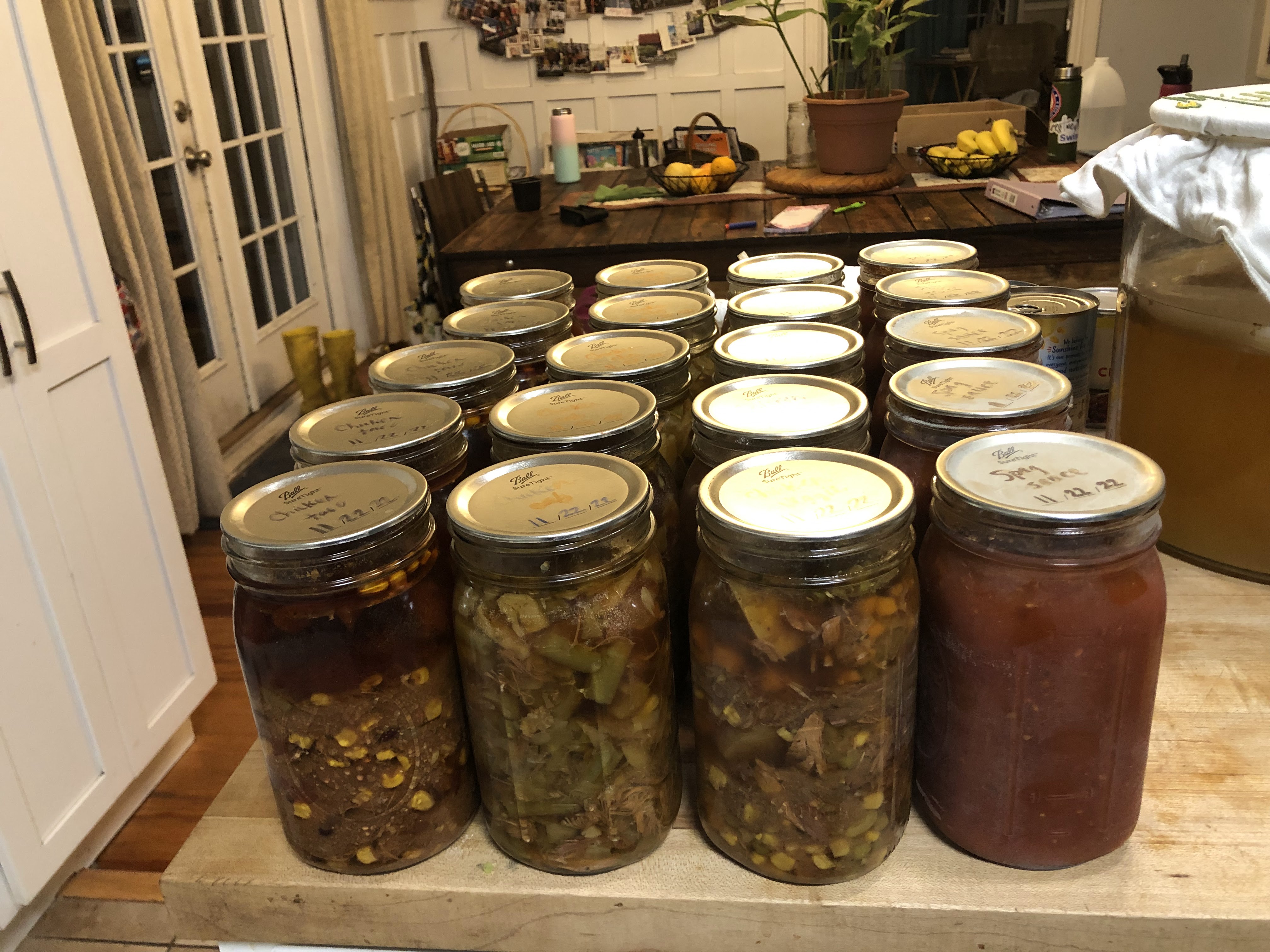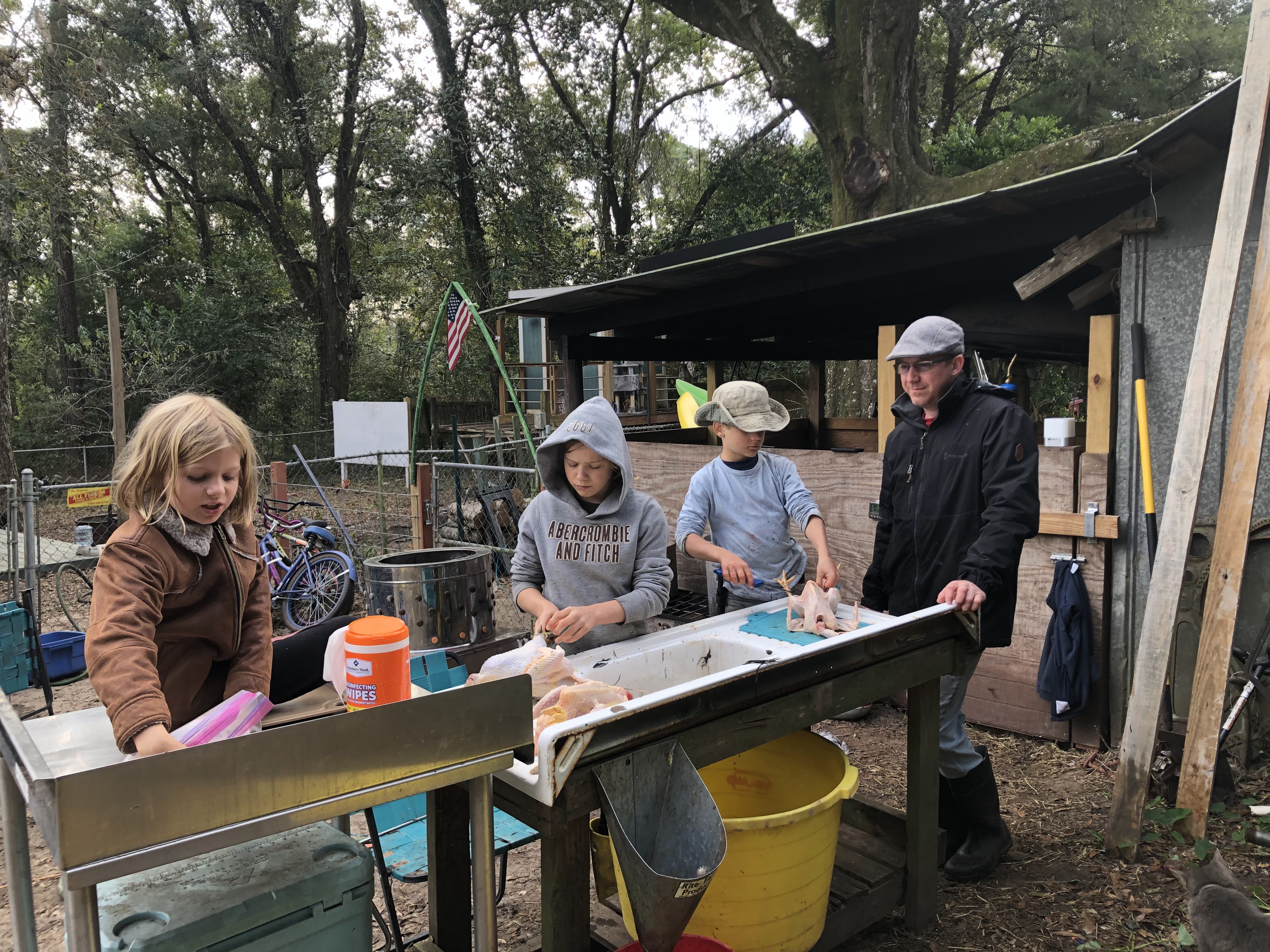 November began with us finding a kitten in the shed. Her name is Midnight and she is loved by all. We took a trip to the bay bunk, Adam smoked bacon, I attended a homesteaders meet-up, we studied Native Americans and visited the local Indian Temple Mound Museum, we watched the Nutcracker ballet with friends, we boiled and canned peanuts, we dissected owl pellets, we processed chickens, we went to the Baker Heritage Festival, I bottled vanilla, Adam stepped on a rod iron Christmas tree spike, we helped process cane syrup, I canned soup and tomato sauce, we celebrated Thanksgiving, we laughed, Adam started on my Christmas gift (a new bookshelf), we picked up our Christmas tree and we wrapped the Christmas books. What a fun month!