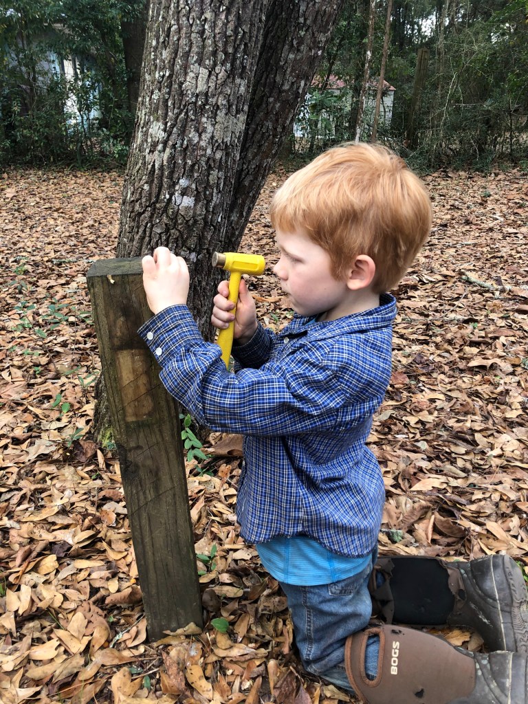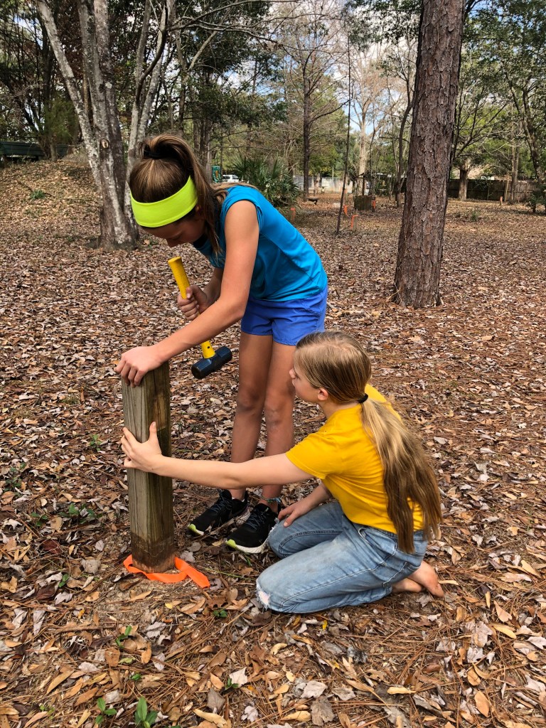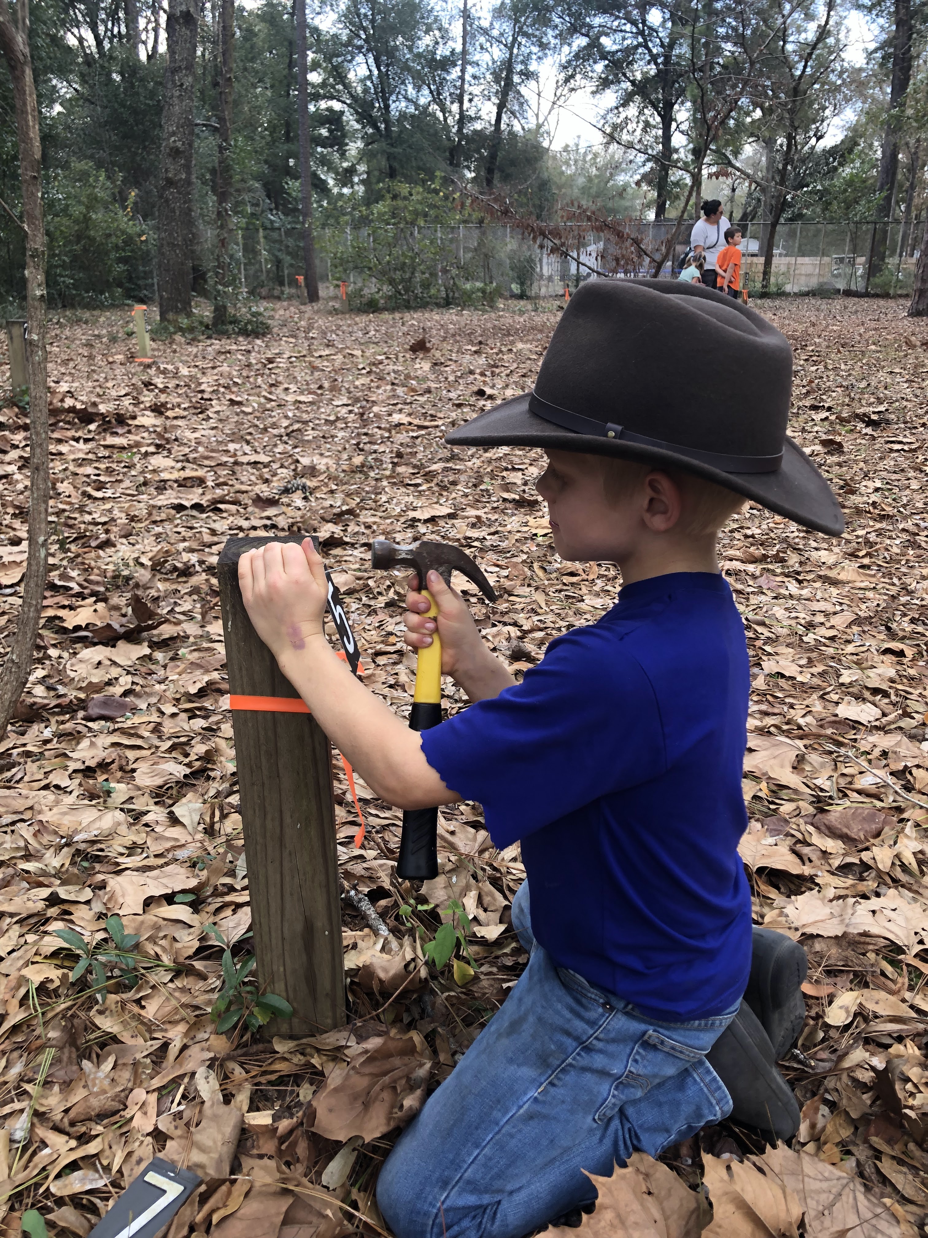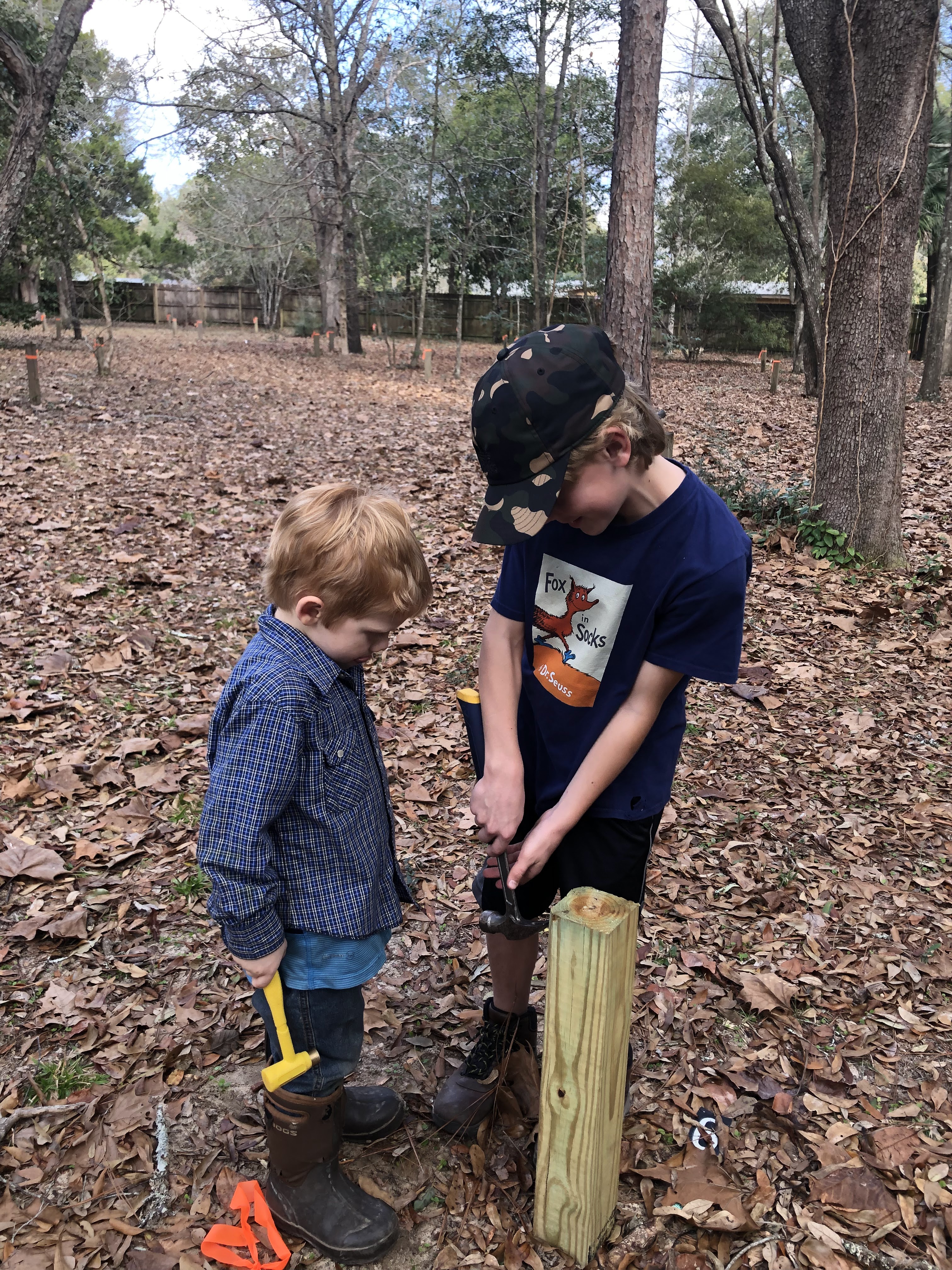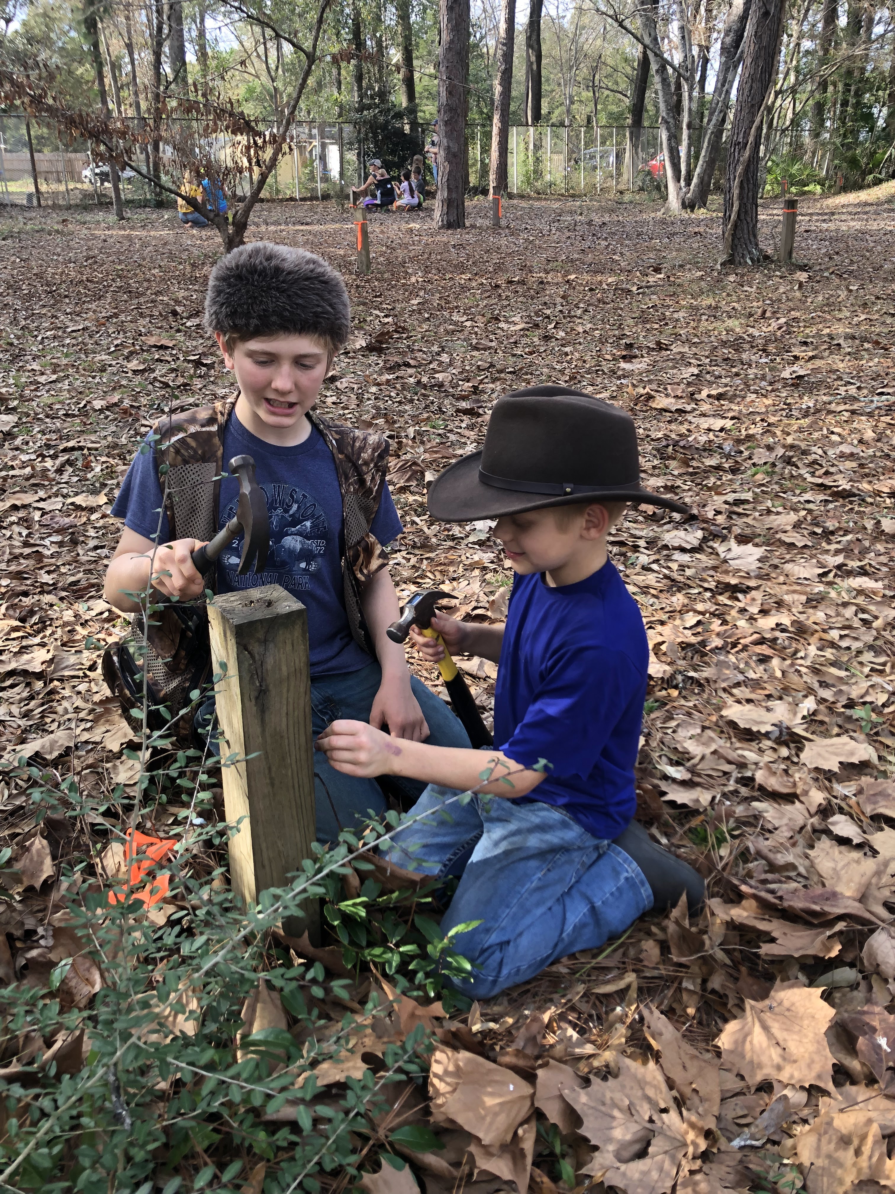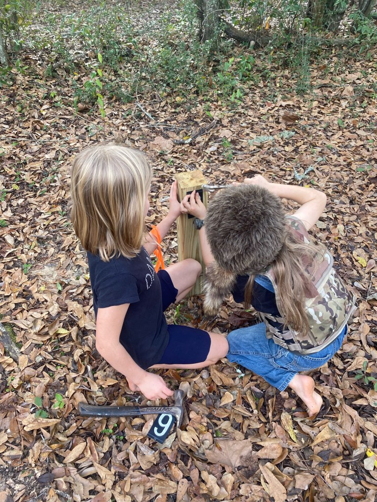 This past Wednesday we had a community service project instead of ballet/chess club. We have an environmental center in town that has 100 native trees, all labeled. In honor of Florida Arbor Day this coming Friday, they were relabeling the numbers on the trees and they asked for help. It is one of our favorite places for nature study so our co-op volunteered to help. It was a beautiful day and the kids worked so hard with their hammer and nails.