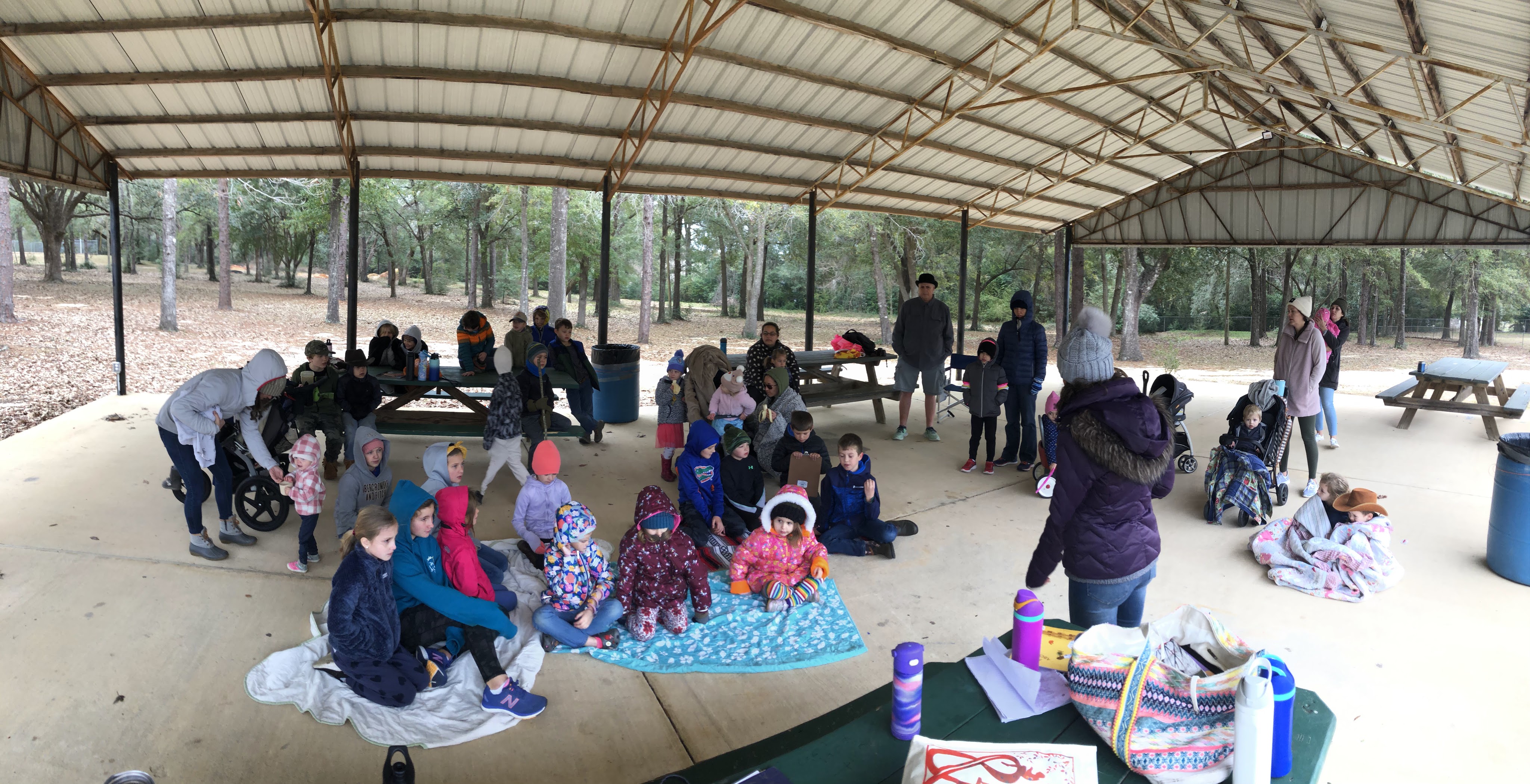 Friday is co-op and this month we are studying local hibernating animals and how they differ from hibernating animals in colder climates. It was a blustery cold January morning with wind gusts 20-30 mph but the kids were troopers.