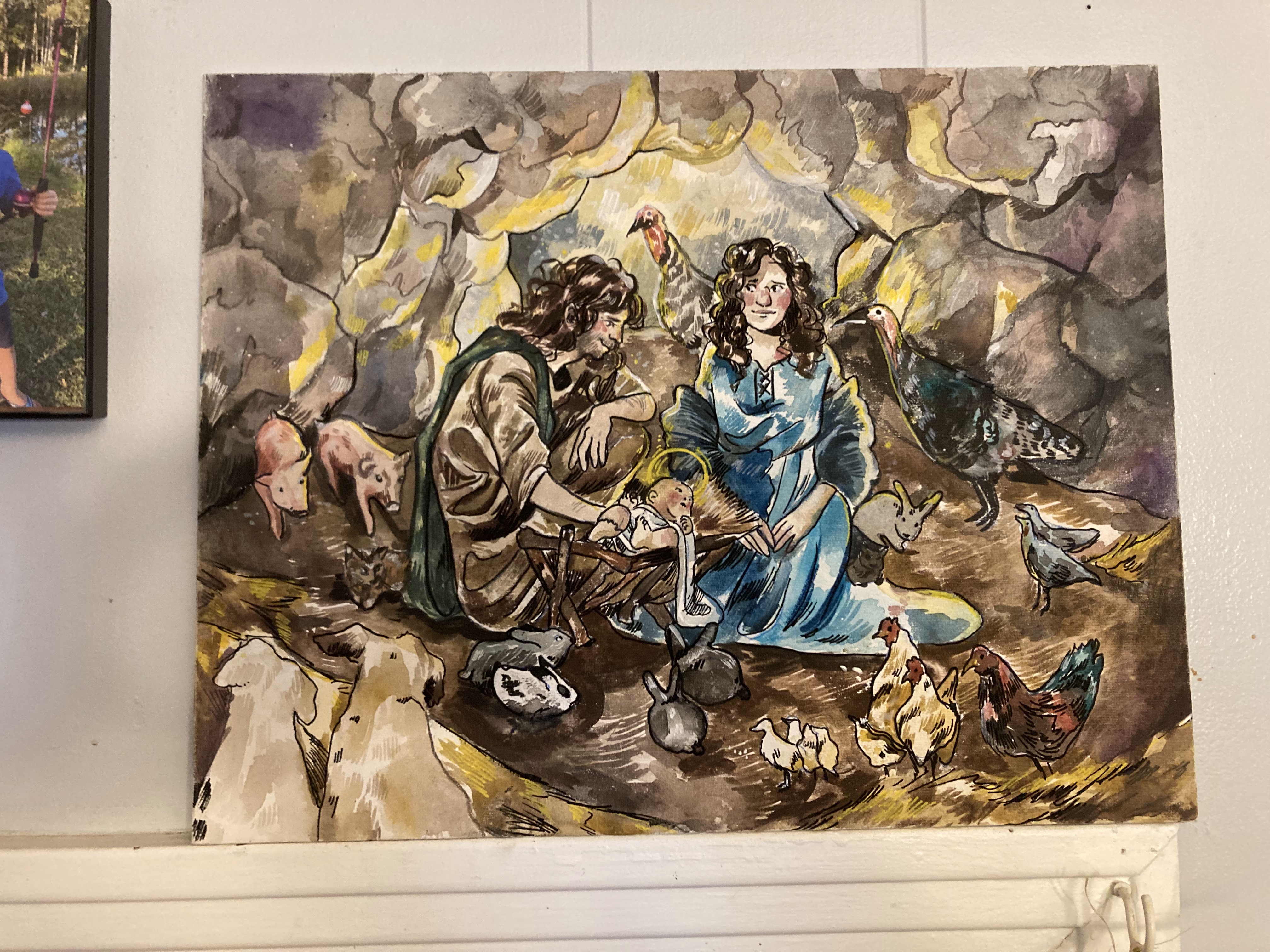 Sourdough pull apart bread is the boys favorite birthday-breakfastAlmost there!My sweet girlsFinished!Fire cider and Christmas KombuchaHomemade Christmas giftsWe had one good harvest of our winter greens before the freeze wiped everythign outWe rendered more lardThe boys version of decoratingMore Christmas gifts: herb saltThey were all excited about Graham’s lock-pick setBoth of our ponds had several inches of ice for four daysTrying to stay warm!My niece painted a nativity scene for us with our farm animals. It’s so beautiful!